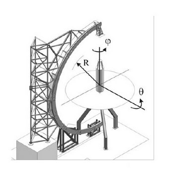 球面扫描法的原理:在ψ和θ坐标系下采集数据。待测天线安装定位于ψ轴转台上,这个转台又安装于另一个θ轴转台之上。