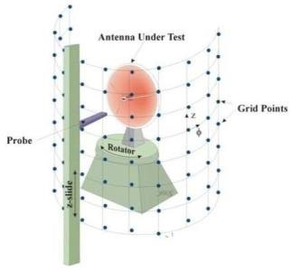 球面近场测量时,探头指向被测天线,探头补偿可以通过计算机代码和测量系统来实现。