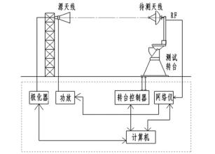 测试部分由被测天线、标准增益天线、测试转台、电缆、数据采集器、接收机、数据处理软件和系统控制计算机等组成。