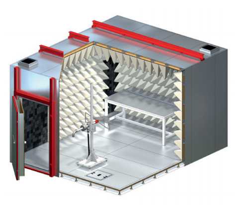 微波暗室就是周围安装微波吸收材料的实验室。暗室不但用于天线测量,还可以用于目标散射场和绕射场等弱场强的测量。使用暗室除了能减弱干扰场提高测量精度外,还能保证有一个保密的、全天候的测量环境。